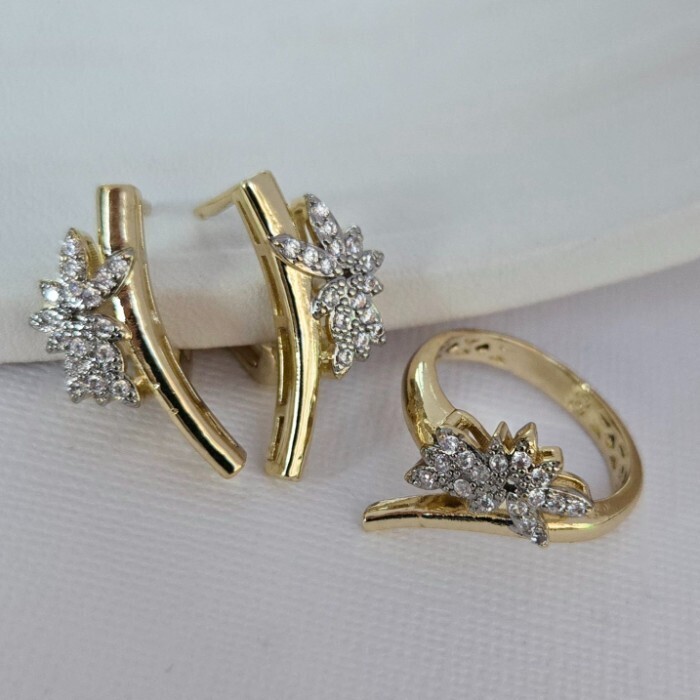 Комплект ювелирной бижутерии Итальянское золото (покрытие желтое 14к), серьги и кольцо 19 р, вставка: фианиты, цвет: прозрачный, арт.216.435-19