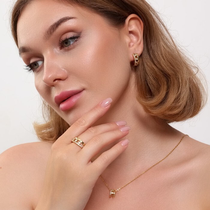 Описание Размер серьги: 2*0,8 см. Замок: конго. Размер кулона: 1*0,6 см. Вес комплекта: 10 гр. Внимание! Цепочка в комплект не входит. Комментарии к товару