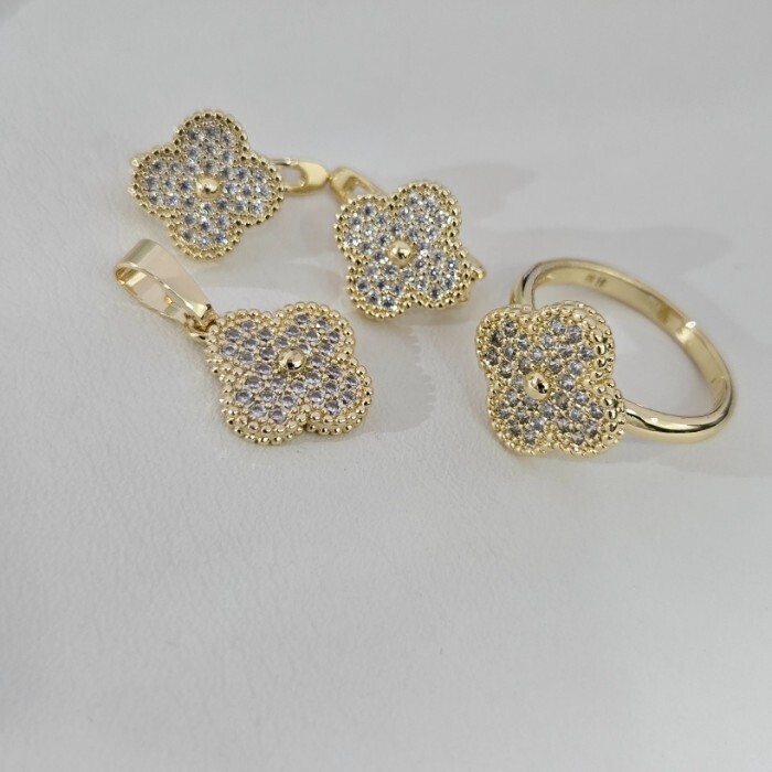 Комплект ювелирной бижутерии Итальянское золото (покрытие желтое 14к), серьги, кулон и кольцо 20 р, вставка: фианиты, цвет: прозрачный, арт.313.312-20