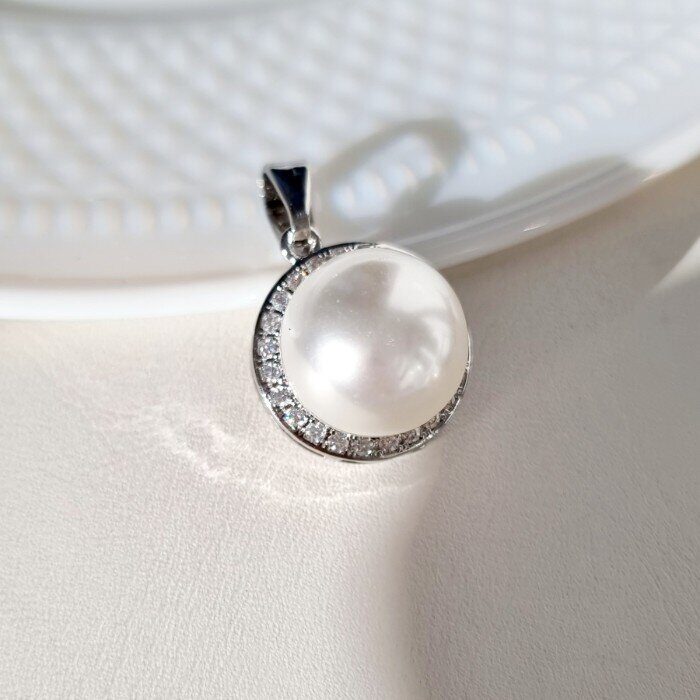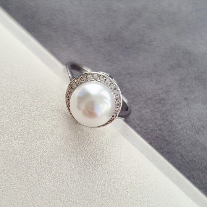Комплект ювелирной бижутерии коллекция "Дубай", кулон и кольцо 19 р, покрытие посеребрение, вставка: фианиты, иск. жемчуг, цвет: перламутровый, арт.214.745-19