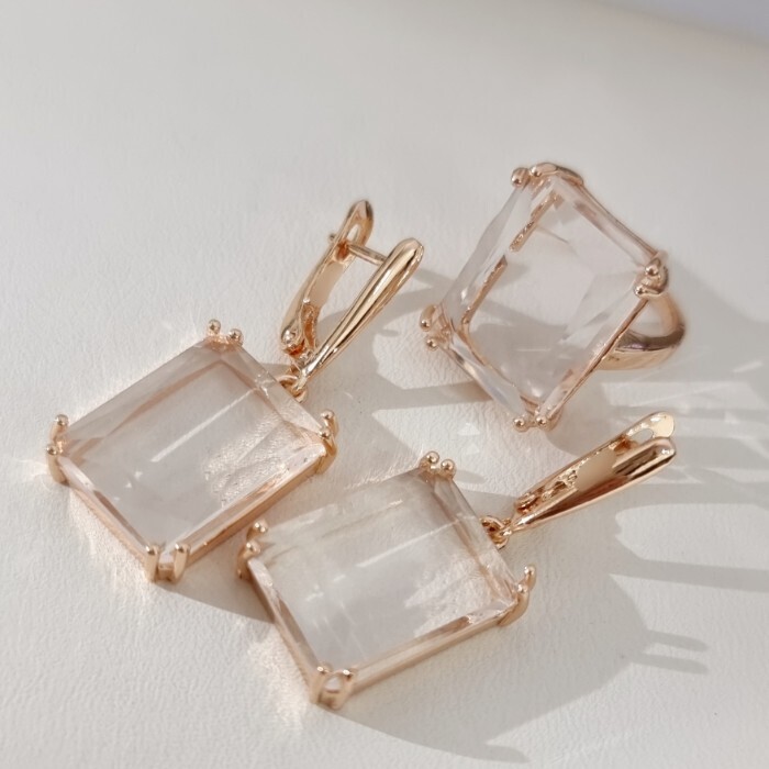 Комплект ювелирной бижутерии коллекция "Дубай" с крупным камнем серьги и кольцо 18 р, покрытие позолота, вставка:фианит, цвет: прозрачный, арт.314.871-18