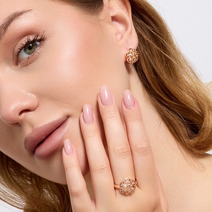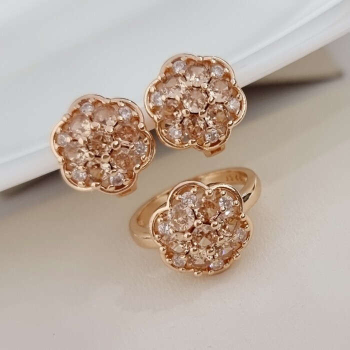 Комплект ювелирной бижутерии коллекция "Дубай" серьги и кольцо 17 р, покрытие позолота, вставка: фианиты, цвет: шампань, арт.313.209-17