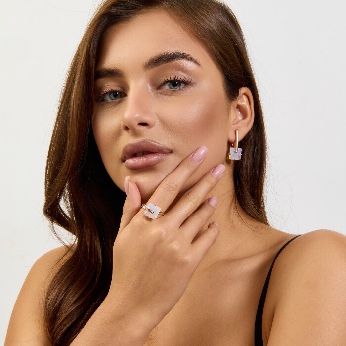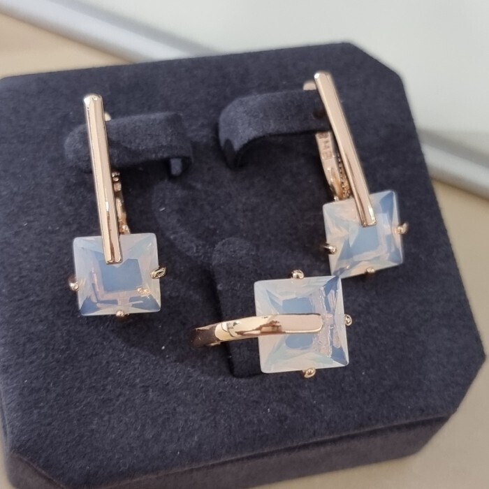 Комплект ювелирной бижутерии коллекция "Дубай" серьги и кольцо 17 р, покрытие позолота, вставка: стекло, цвет: перламутровый голубой, арт.414.175-17