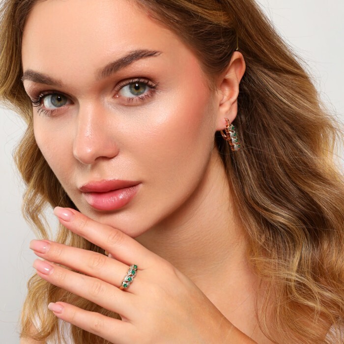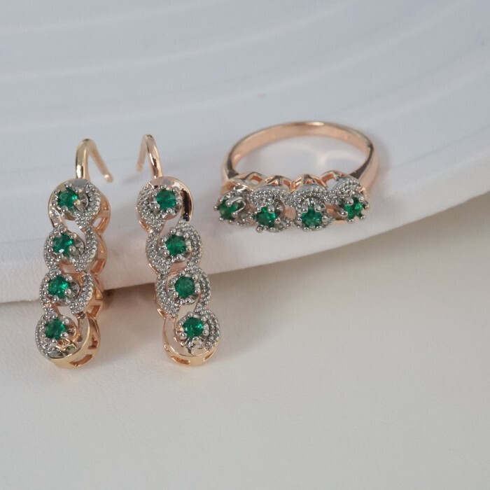 Комплект ювелирной бижутерии коллекция "Дубай" серьги и кольцо 18 р, покрытие позолота, вставка: фианиты, цвет: зеленый, арт.213.979-18