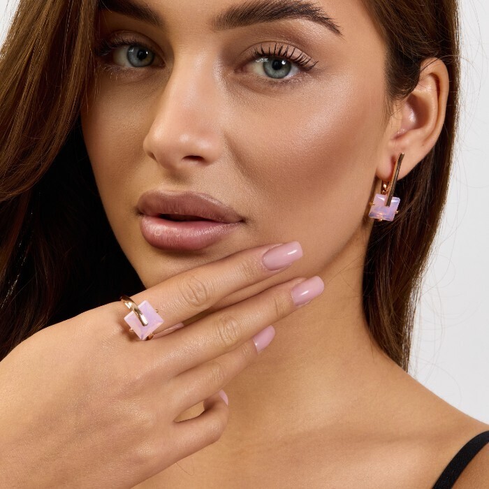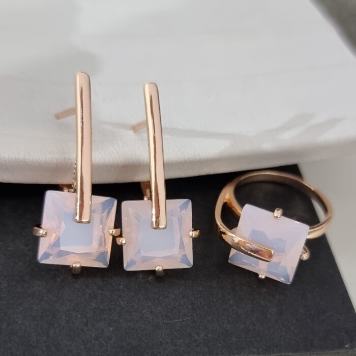 Комплект ювелирной бижутерии коллекция "Дубай" серьги и кольцо 18 р, покрытие позолота, вставка: стекло, цвет: розовый, арт.414.172-18