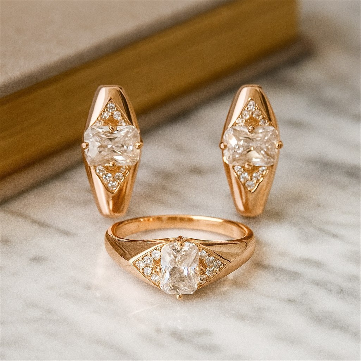Комплект ювелирной бижутерии коллекция "Дубай" серьги и кольцо 19 р, покрытие позолота, вставка: фианит, цвет: прозрачный, арт.007.138-19
