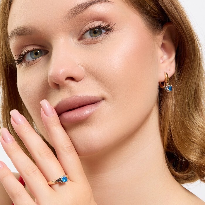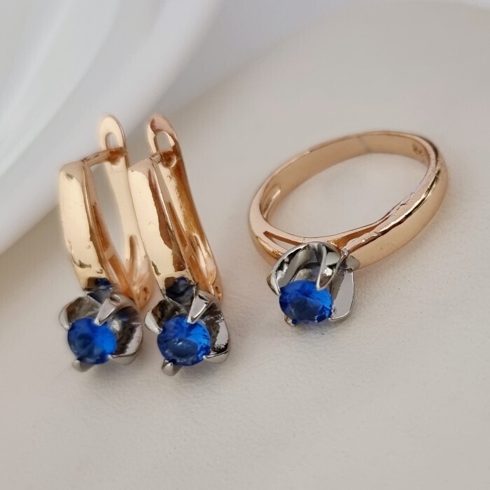 Комплект ювелирной бижутерии коллекция "Дубай" серьги и кольцо 19 р, покрытие позолота, вставка: фианиты, цвет: голубой, арт.313.203-19