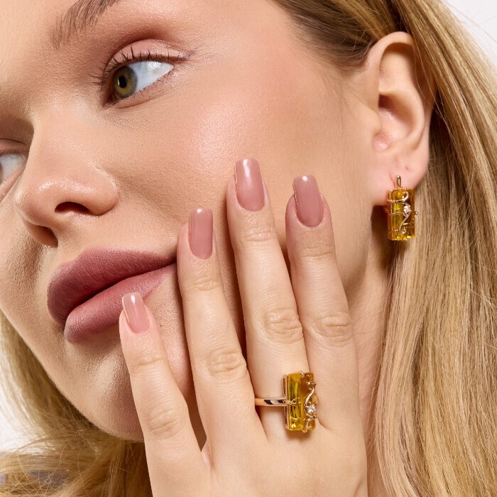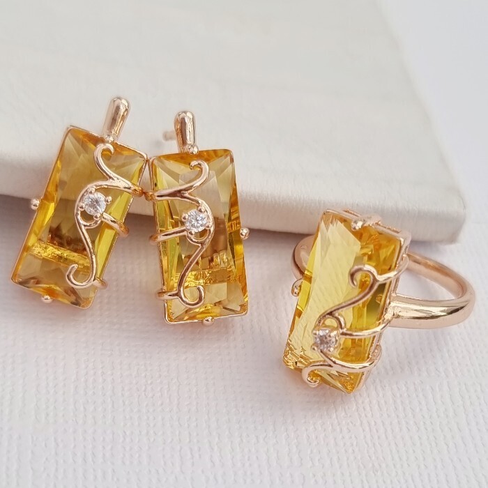 Комплект ювелирной бижутерии коллекция "Дубай" серьги и кольцо 19 р, покрытие позолота, вставка: фианиты, цвет: желтый, арт.414.022-19