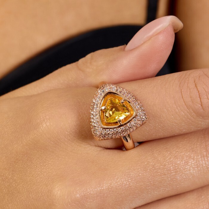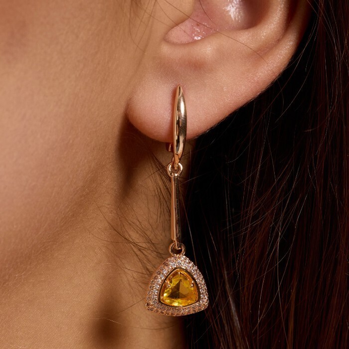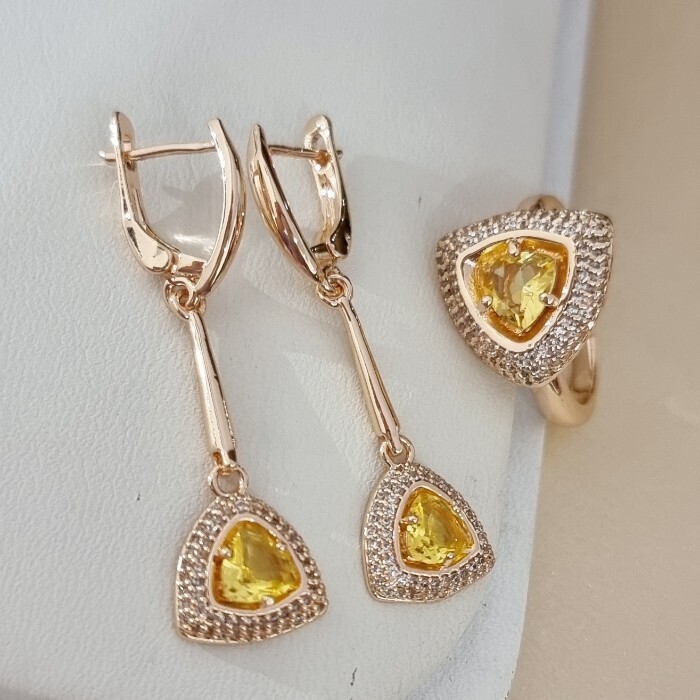 Комплект ювелирной бижутерии коллекция "Дубай" серьги и кольцо 19 р покрытие позолота, вставка: фианиты и цирконы, цвет: желтый и прозрачный, арт.215.620-19
