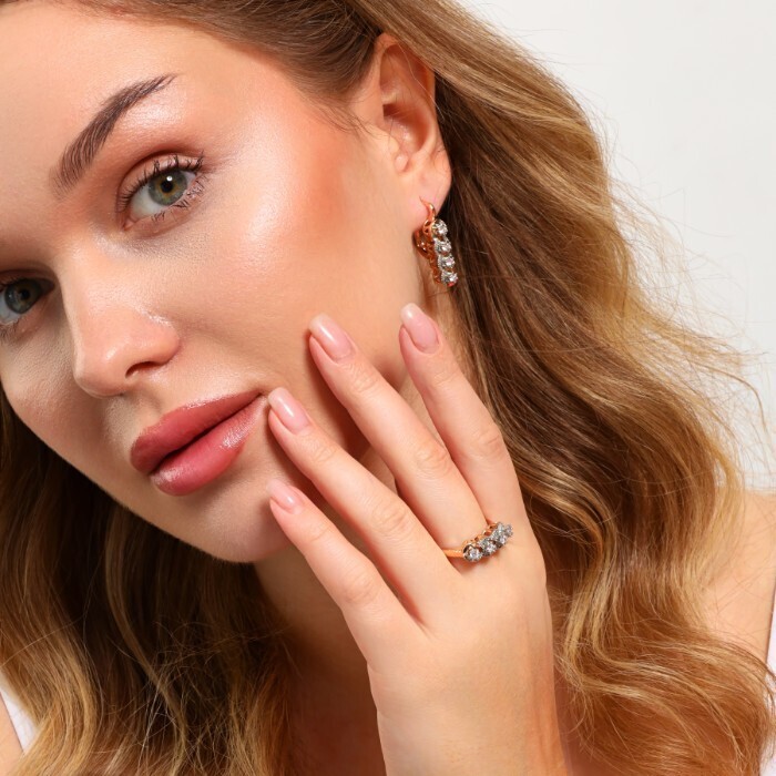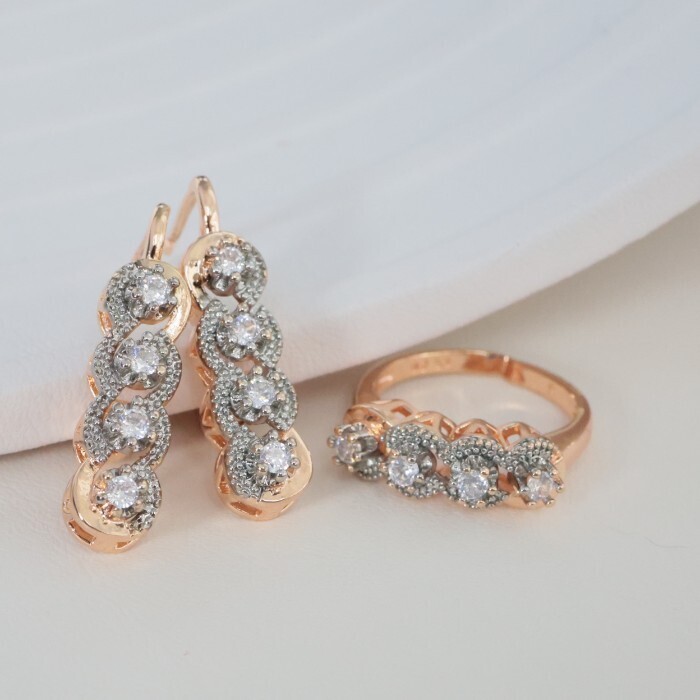 Комплект ювелирной бижутерии коллекция "Дубай" серьги и кольцо 20 р, покрытие позолота, вставка: фианиты, цвет: прозрачный, арт.213.977-20