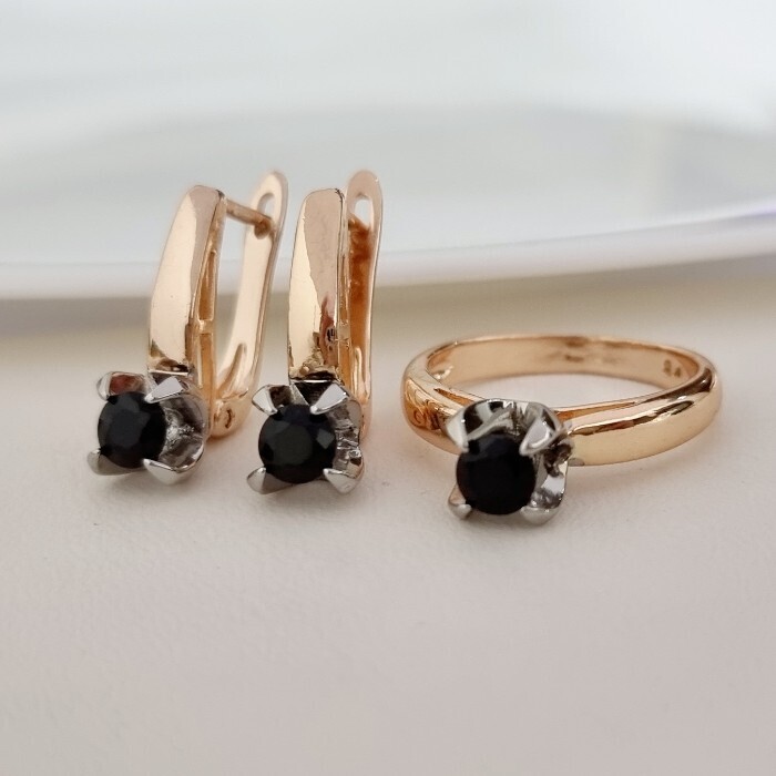 Комплект ювелирной бижутерии коллекция "Дубай" серьги и кольцо 20 р, покрытие позолота, вставка: фианиты, цвет: черный, арт.313.204-20