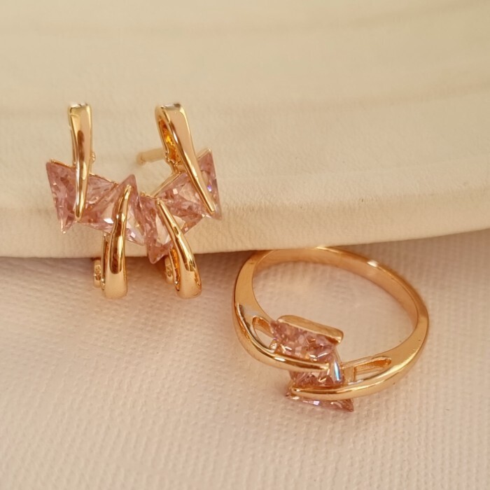 Комплект ювелирной бижутерии коллекция "Дубай" серьги и кольцо 20 р, покрытие позолота, вставка: фианиты, цвет: розовый, арт.314.997-20