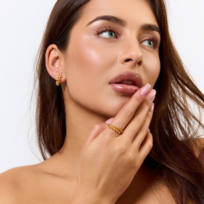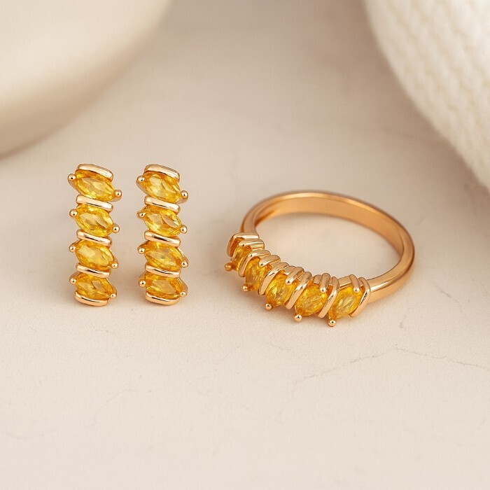Комплект ювелирной бижутерии коллекция "Дубай" серьги и кольцо 20 р, покрытие позолота, вставка: фианиты, цвет: желтый, арт.414.227-20