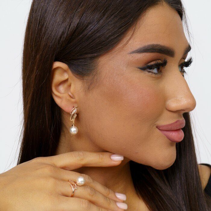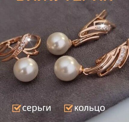 Описание Размер кольца: 20. Размер серёжек: 3,3*1 см. Замок: английский. Материал: бижутерный сплав, фианиты, иск.жемчуг. Вес: 8 гр. Комментарии к товару