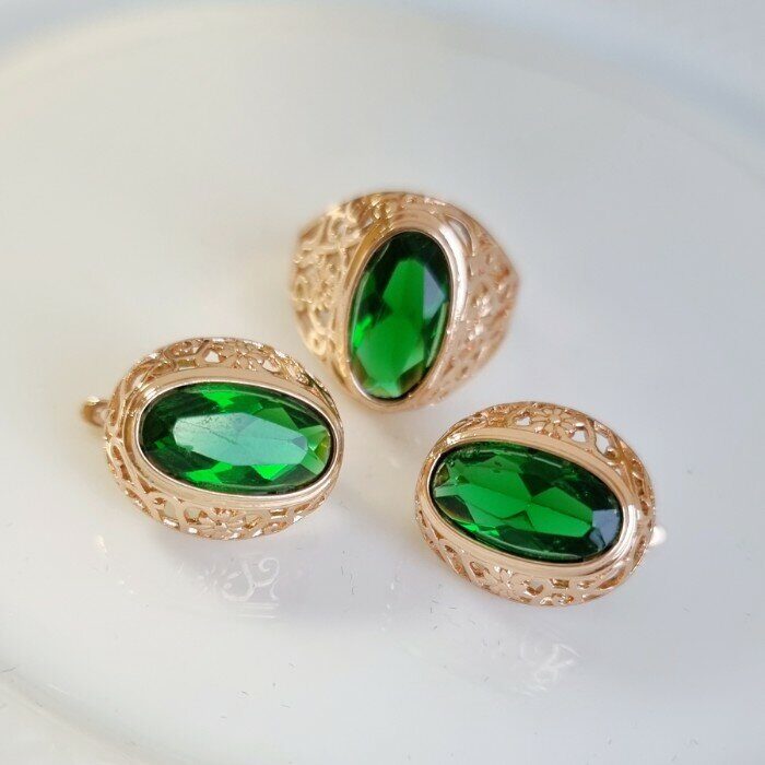 Описание Размер кольца: 19,5. Размер серёжек: 2*1,5 см. Замок: английский. Материал: бижутерный сплав, камни. Вес: 11 гр. Комментарии к товару