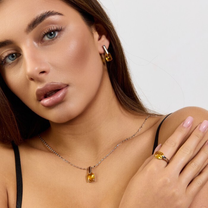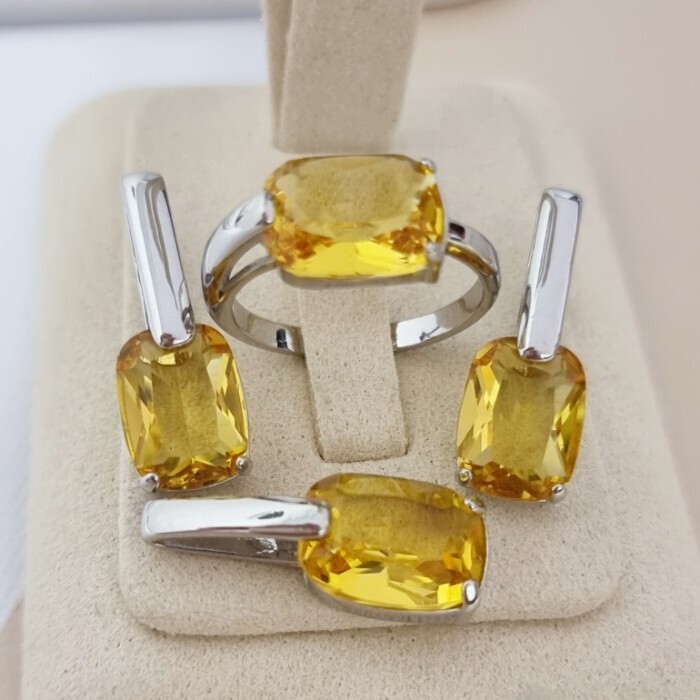 Комплект ювелирной бижутерии коллекция "Дубай" серьги, кулон и кольцо 18 р покрытие посеребрение, вставка: стекло, цвет: желтый, арт.215.535-18