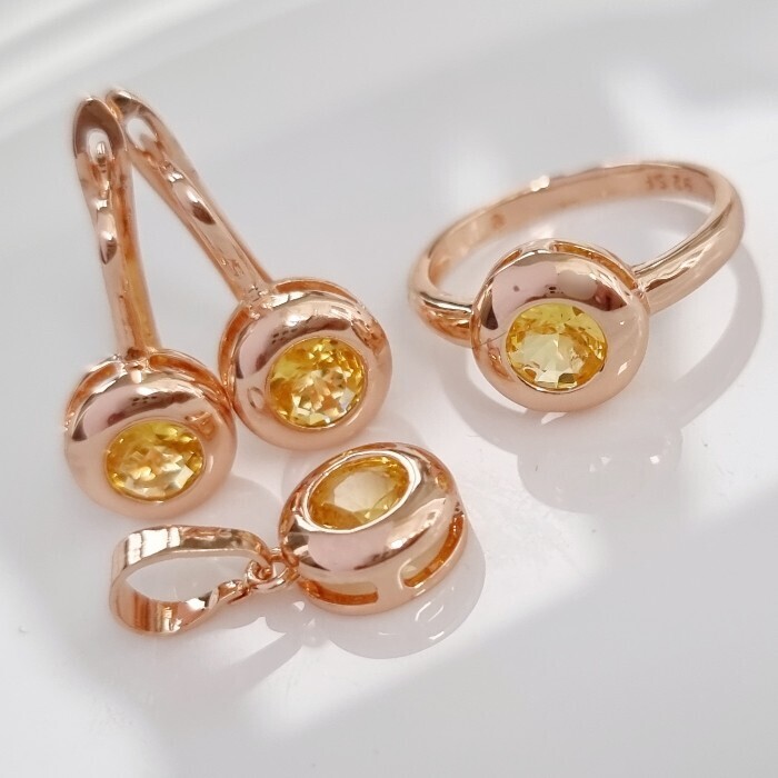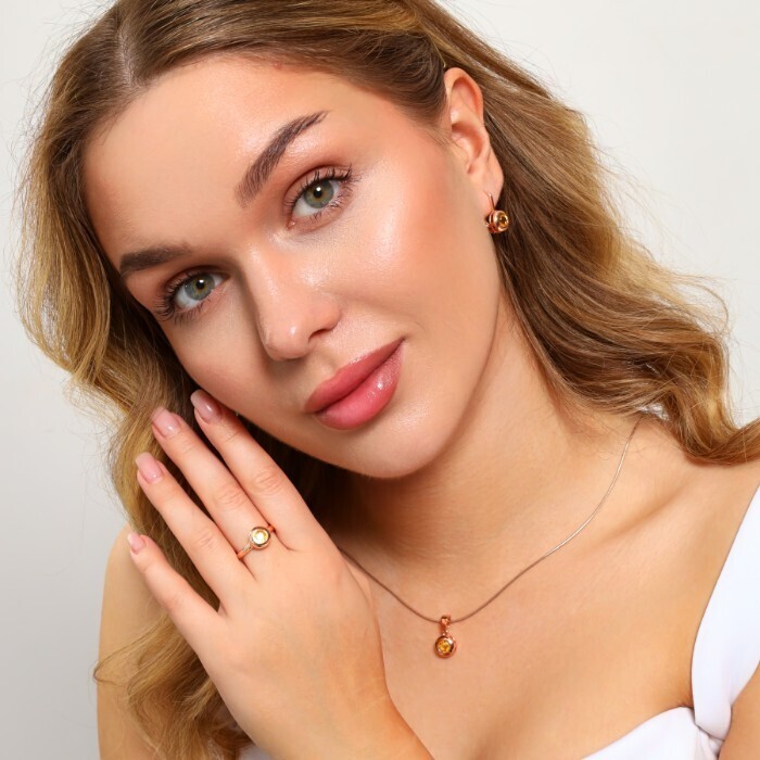 Комплект ювелирной бижутерии коллекция "Дубай" серьги, кулон и кольцо 19 р, покрытие: позолота, вставка: фианиты, цвет: желтый, арт.213.906-19