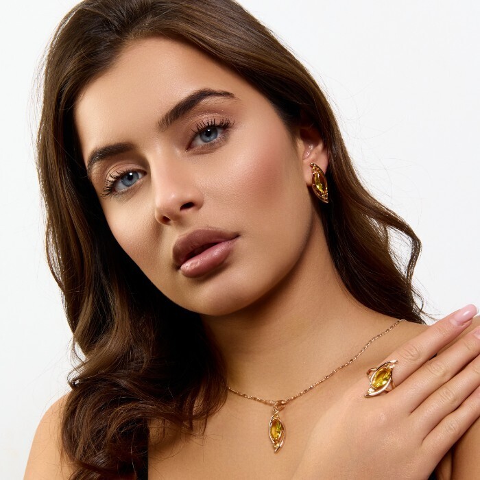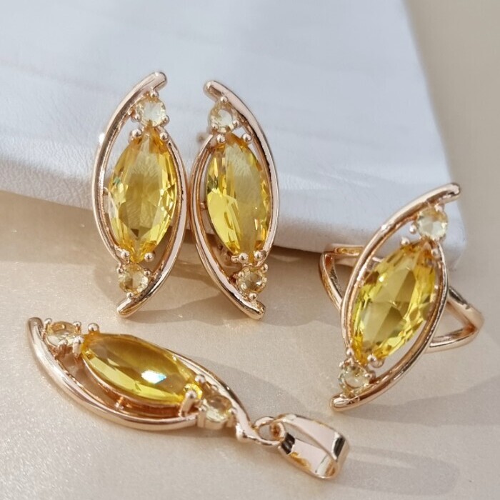 Комплект ювелирной бижутерии коллекция "Дубай" серьги, кулон и кольцо 20 р, покрытие позолота, вставка: стекло, цвет: желтый, арт.414.296-20