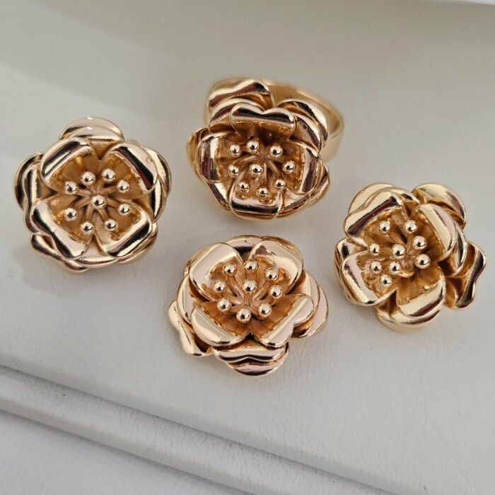 Комплект ювелирной бижутерии коллекция "Дубай" в форме цветов серьги, кулон и кольцо 19 р покрытие позолота, арт.313.294-19