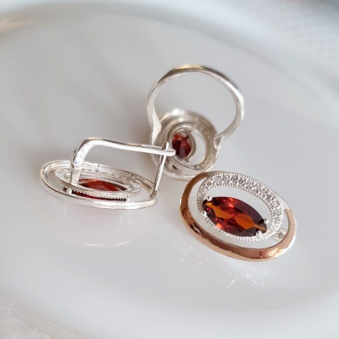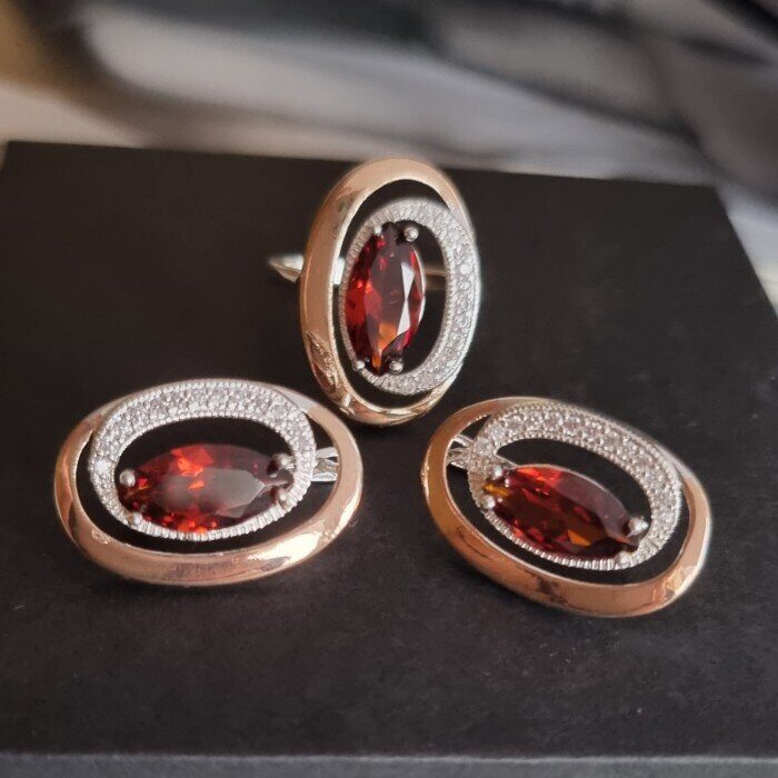 Описание Размер кольца: 17. Размер серёжек: 2,5*1,5 см. Замок: английский. Материал: бижутерный сплав, камни. Вес: 11 гр. Комментарии к товару