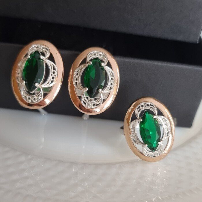 Описание Размер кольца: 17. Размер серёжек: 2,5*1,2 см. Замок: английский. Материал: бижутерный сплав, камни. Вес: 12 гр. Комментарии к товару