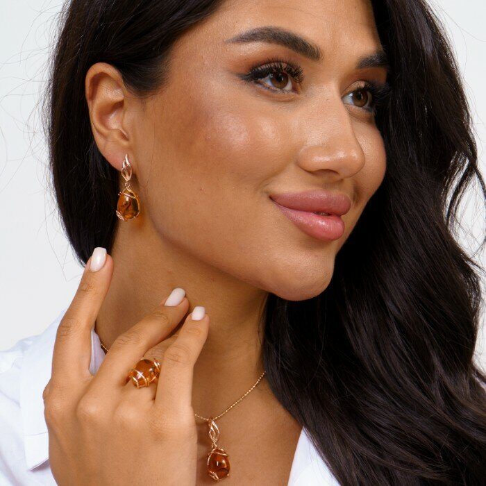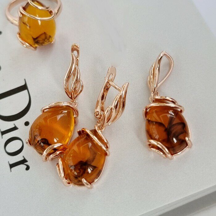 Описание Размер кольца: 20. Размер серёжек: 3,7*1,3 см. Размер кулона: 3,5*1,3 см. Замок: английский. Материал: бижутерный сплав, иск.янтарь. Вес: 13 гр. Комментарии к товару