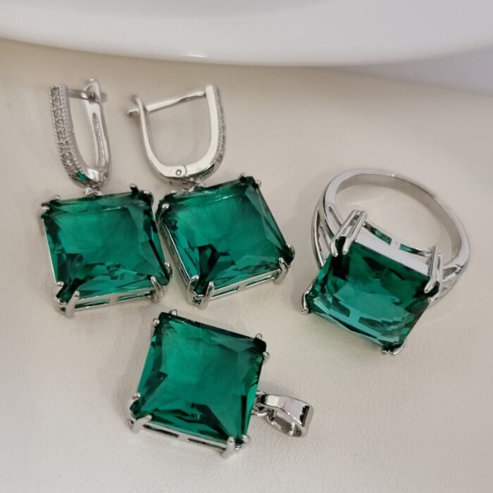 Описание Размер серьги: 3*1,5 см. Замок: английский. Размер кулона: 2*1,5 см. Вес комплекта: 19 гр. Внимание! Цепочка в комплект не входит. Комментарии к товару