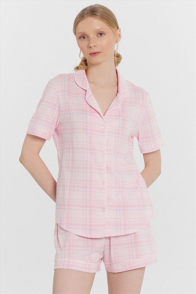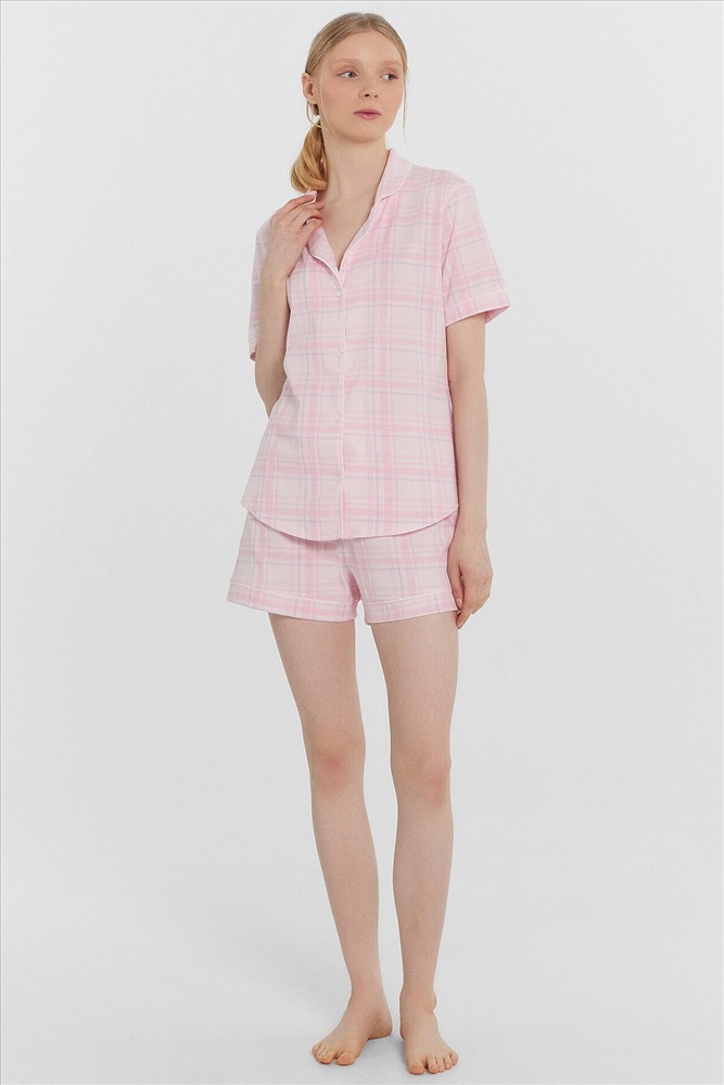 ID товара: 1069260 Состав: 99% хлопок; 1% эластан Сезон: Весна/Лето Длина: Короткая Фасон: Повседневный Рукав: короткие Вид застежки: Пуговицы Модель юбки/платья: Без юбки Тип карманов: Без карманов Декоративные элементы: Кант Утеплитель: Без утепления Основная ткань: Хлопок Покрой: прямой Уход: Деликатная стирка при 30 градусах Модель брюк: Шорты Фактура материала: Кулирное полотно Страна бренда: Беларусь Страна производства: Беларусь Комфортная пижама женская в "костюмном стиле" из высококачественного хлопка для приятных снов и домашних дел. Жакет прямой, с отложным воротником и лацканами, короткими рукавами, застегивается на пуговицы. Дополняют его свободные шорты длины мини, с резиновой тесьмой в поясе и атласной тесьмой, которая завязывается на бантик. Особенность модели – контрастные канты на рукавах, воротнике и передней части рубашки. В пижаме абсолютно не жарко, комфортный материал не сковывает движений. Красивая и интересная модель на каждый день. В линейке много актуальных расцветок, широкий размерный ряд, есть варианты для девушек с пышными формами plus-size. Лучший выбор домашней одежды на каждый день от Mark Formelle. Рекомендуем! Комментарии к товару