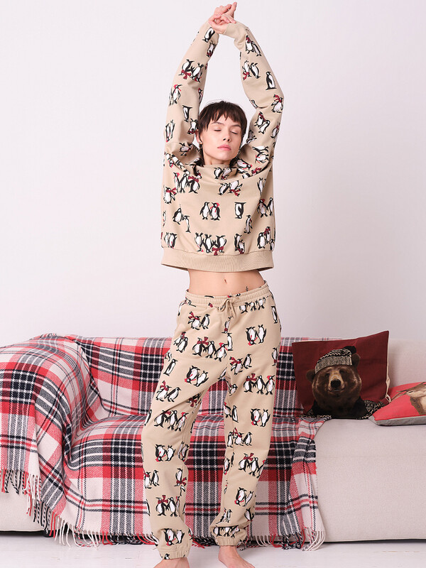 Костюм теплый женский с начесом. Оверсайз силуэт дарит свободу движений и комфорт. Яркий принт (рисунок) придаст настроению и создаст уют. Костюм домашний женский с брюками выполнен в оловер принт - самый тренд сезона!