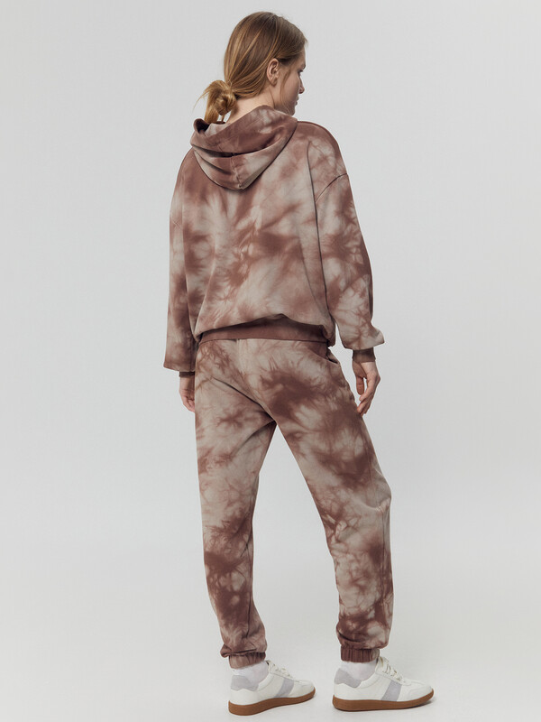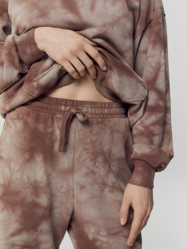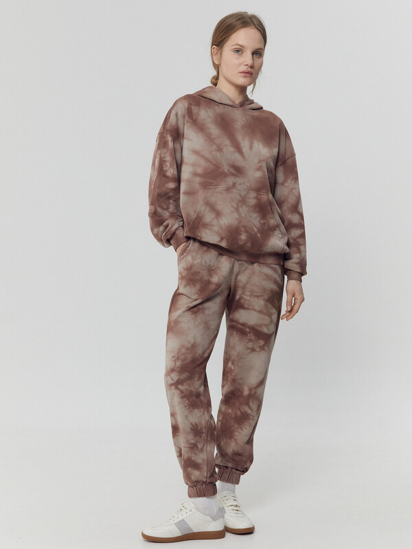 Брюки свободного силуэта. Сиденье немного спущено. В боковых швах обработаны карманы.Подкладка карманов из кулирки.