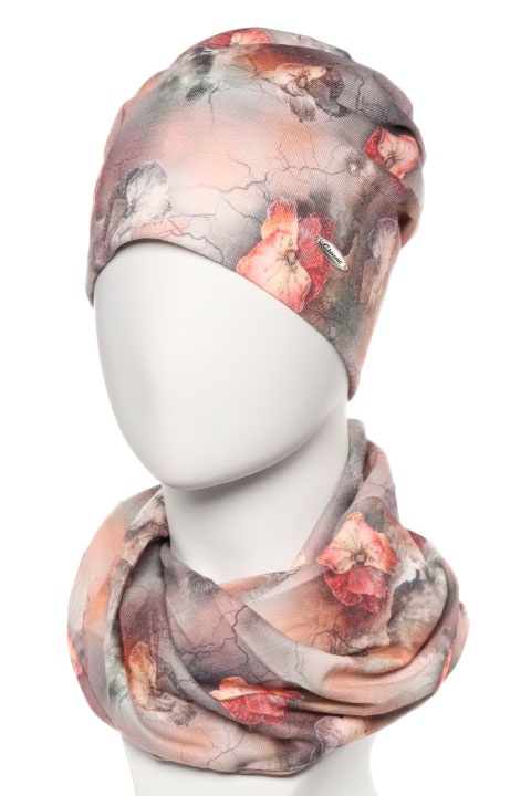 Подклад: Трикотаж Тип изделия: Комплект Состав: Хлопок, полиэстер Комплект женский: шапка трикотажная с принтом (принт у модели разный) на подкладе из хлопкового трикотажа. Данную модель можно носить в двух вариантах: как бини или под хвост/пучок, смотрите фото.+ Шарф-снуд труба, двойной, сшит с переворотом (восьмеркой). Размер: высота 22 х длина 31*2 см. Комментарии к товару