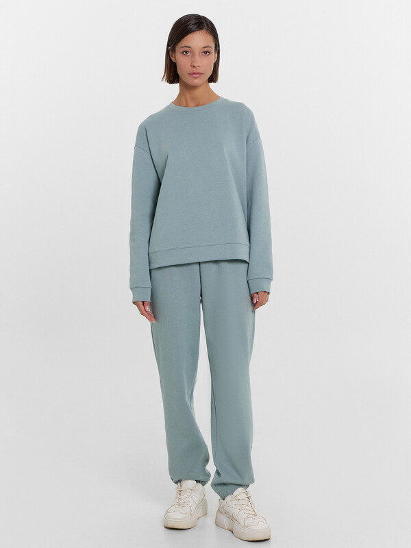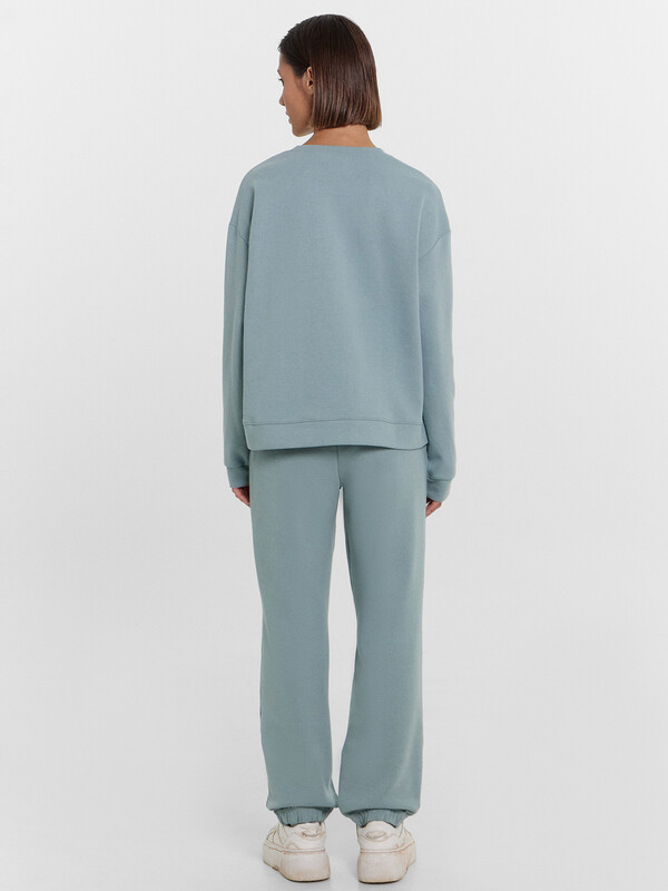 Горловина круглой формы. Плечо спущено, пройма углублена. Рукав втачной длинный, по низу рукава отрезная манжета. Пояс отрезной. Брюки-джоггеры из основного полотна с эластичной тесьмой внутри. По поясу проложены отделочные строчки. В боковых швах выполнены карманы с отрезным бочком. Легкий и невероятно комфортный комплект женский на каждый день. Широкий размерный ряд. Базовые актуальные цвета в коллекции. Рекомендуем для создания комфртных образов весной, летом и в демисезон! 85% хлопок; 15% полиэстер Комментарии к товару