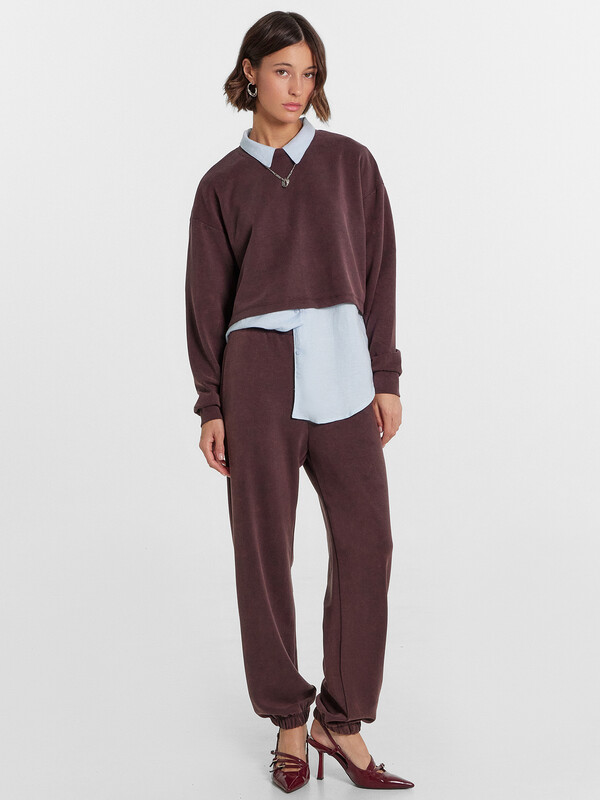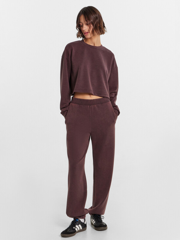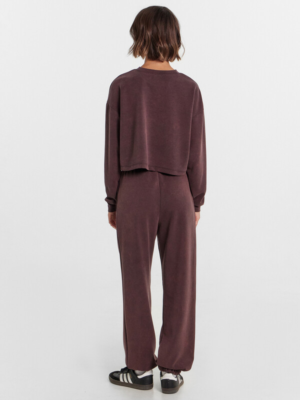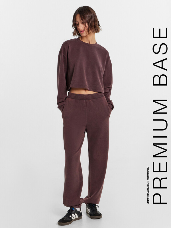 отрезная манжета из основного полотна. Джемпер укорочен.