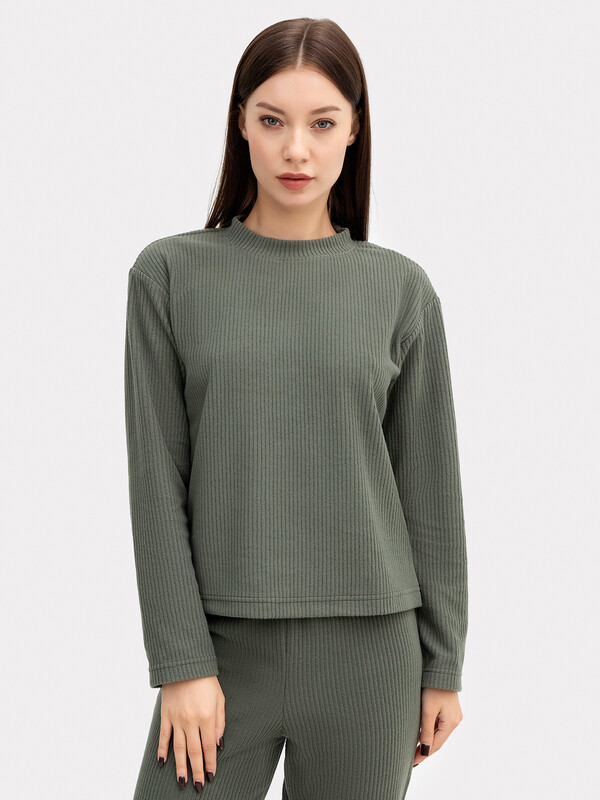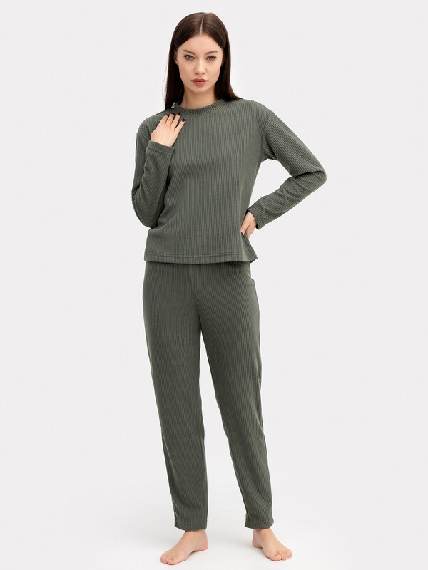 Комплект женский из джемпера и брюк. Джемпер женский свободного силуэта. Горловина круглой формы с обтачкой из основного полотна. Рукав спущенный. Рукава и низ джемпера обработаны швом в подгибку. Брюки с посадкой на талии, прямые заужены к низу . Пояс цельнокроеный с резиной внутри. Низ брюк обработан швом в подгибку. 100% полиэстер Вид застежки: без застежки Декоративные элементы: без элементов Модель брюк: прямые Назначение: домашняя одежда Покрой: свободный Предмет: Костюмы Тип карманов: без карманов Тип рукава: длинные Утеплитель: без утепления Уход за вещами: деликатная стирка при 30 градусах длина брючин по внутр. шву, см: 71,4 длина изделия по боковому шву - низ, см: 100,4 длина изделия по спинке, см.: 56,8 фактура материала: флис ширина брючин - низ, см: 16,1 Комментарии к товару