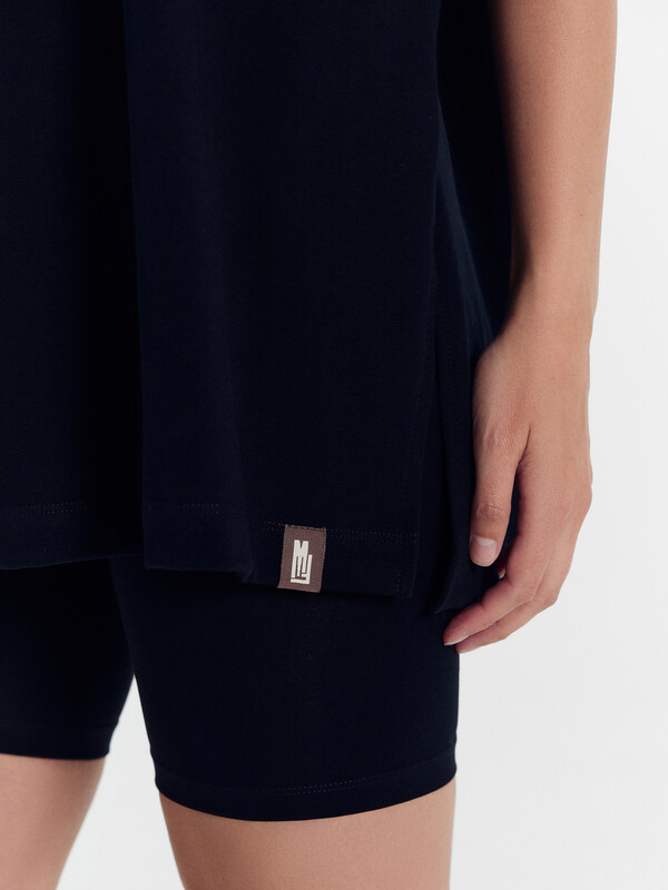 Джемпер удлинен, с разрезами в боковых швах.