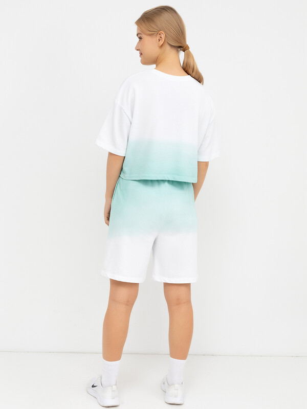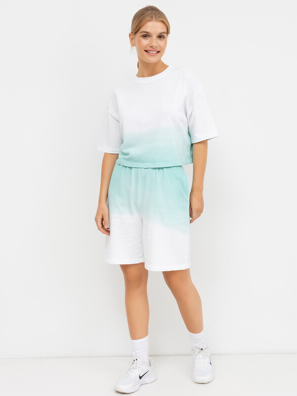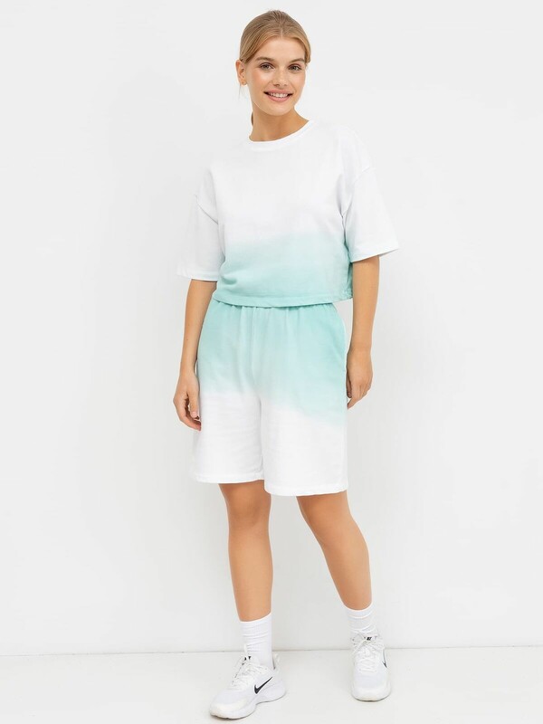 70% хлопок; 30% полиэстер Вид застежки: без застежки Воротник: нет Декоративные элементы: без элементов Назначение: домашняя одежда Покрой: свободный Пол: Женский Тип карманов: без карманов Тип рукава: короткие Утеплитель: без утепления Уход за вещами: деликатная стирка при 30 градусах длина брючин по внутр. шву, см: 18,4 длина изделия по боковому шву - низ, см: 50,5 длина изделия по спинке, см.: 43,0 фактура материала: футер ширина брючин - низ, см: 31,6 Комментарии к товару