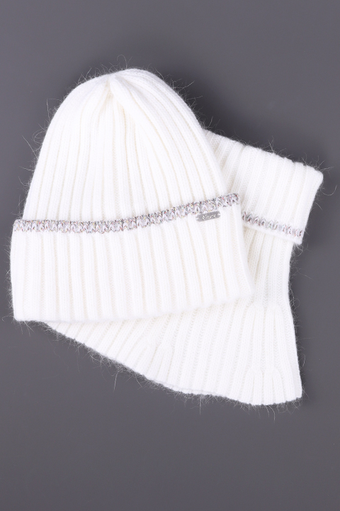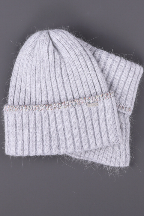 Подклад: Без подклада Тип изделия: Комплект Состав: Ангора Место: 1П1-0-К1 Комплект шапка и манишка, выполнен из пушистой, мягкой пряжи "Angora". Вязка плотная и эластичная. Верх отворота шапки и манишки украшен полосой из люрекса-мультиколор. Манишка одинарная, размер: 42*22. Комментарии к товару