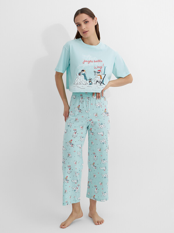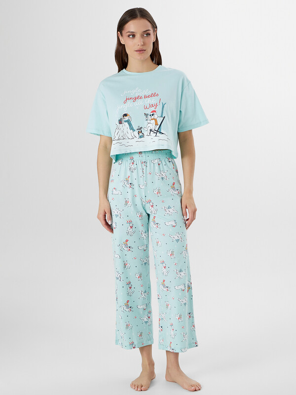 Очаровательная пижама женская с бриджами и укороченной футболкой — это идеальный комплект для комфортного отдыха и сна. Модель выполнена из хлопка, который обеспечивает мягкость, воздухопроницаемость и заботу о чувствительной коже. Укороченная футболка свободного кроя и бриджи с эластичным поясом дарят полную свободу движений, а нежные швы предотвращают натирание.