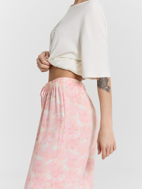 Стильная пижама женская с бриджами прямого кроя и джемпером с коротким рукавом. Модель изготовлена из нежной вискозы и модала. Красивый насыщенный цвет и оригинальный принт делают ее интересной и привлекательной. Пижама с бриджами — отличный вариант женской одежды для сна, домашних дел, а также для отдыха дома. Мягкий, эластичный материал гипоаллергенен, подойдет для нежной кожи. В линейке много интересных расцветок, широкий размерный ряд, есть актуальные варианты plus-size пижам женских для девушек с пышными формами. Домашний комплект приятно получить как подарок на праздники, так и просто без повода!