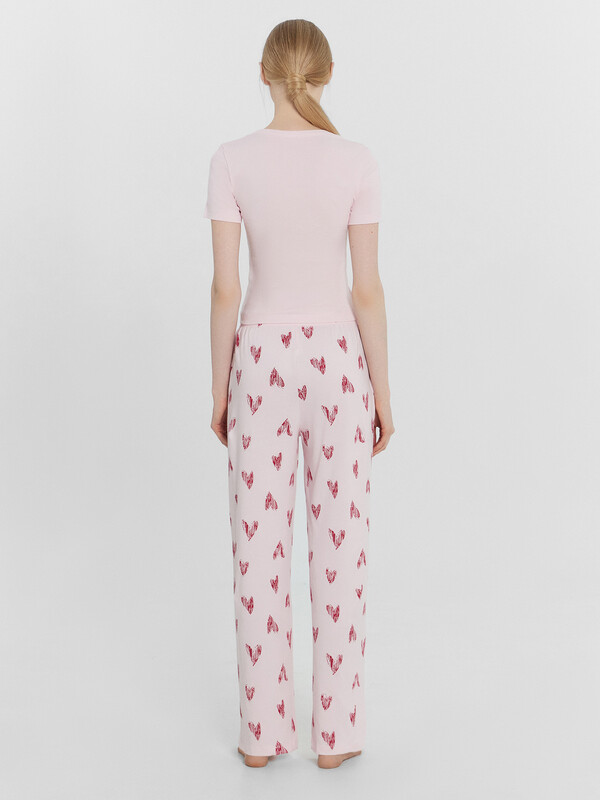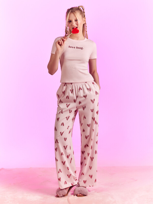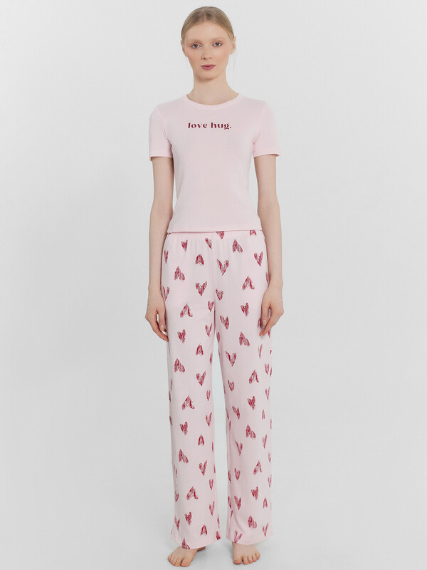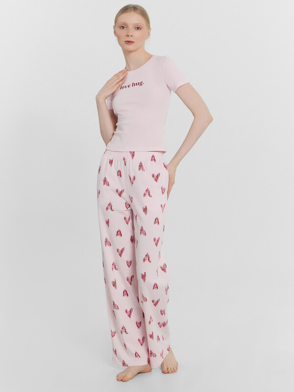 Женская пижама для комфортных домашних образов включает в себя приталенную футболку с круглым вырезом горловины и короткими рукавами, а также брюки свободного силуэта с эластичным поясом и боковыми карманами. Футболка выполнена из рибаны - мягкой и эластичной ткани, отличающейся своим особым плетением, которое обеспечивает комфорт и хорошую воздухопроницаемость. Брюки изготовлены из кулирки - трикотажного материала с гладкой поверхностью, известного своей легкостью и мягкостью. Кулирка прекрасно пропускает воздух и обеспечивает высокий уровень комфорта, не стесняя движений. Благодаря своей прочности, изделия из такого материала хорошо сохраняют форму и цвет даже после многочисленных стирок. Пижама Mark Formelle - это идеальный выбор для создания уютных и стильных домашних образов.