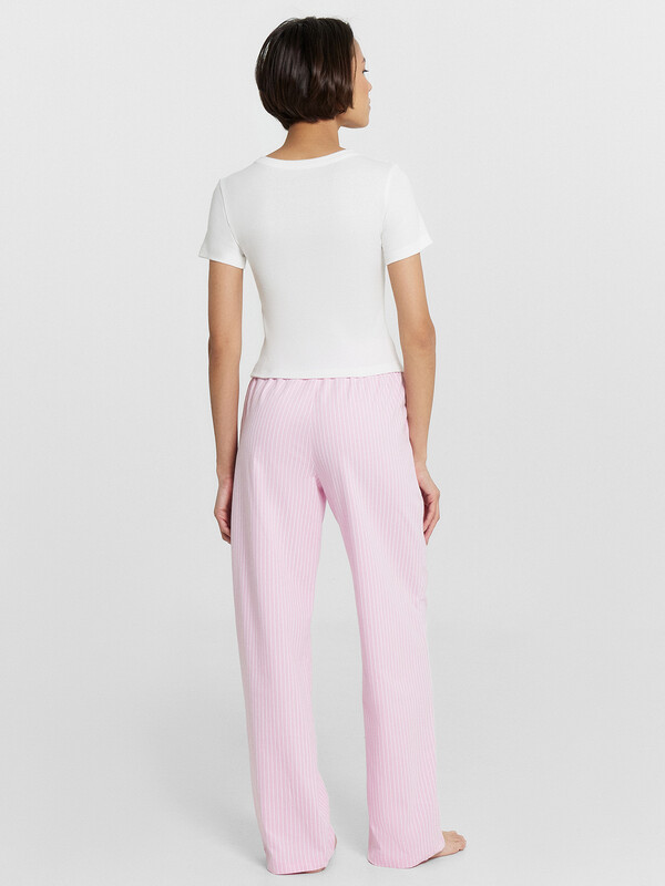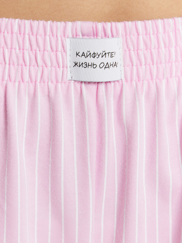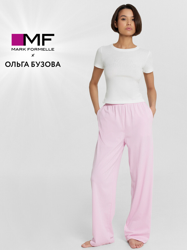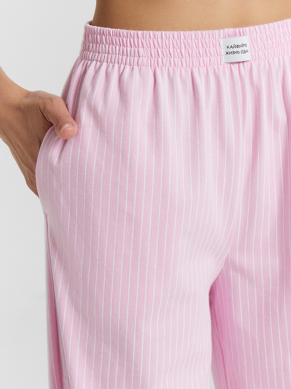 Женский домашний комплект — это гармоничное сочетание комфорта и элегантности. Футболка приталенного кроя с круглой горловиной подчеркивает фигуру и создает аккуратный силуэт. Короткие рукава делают ее практичной и удобной, а обработка нижних срезов швом вподгибку добавляет аккуратности и долговечности. Брюки свободного силуэта с посадкой на талии обеспечивают комфорт и свободу движений, идеально подходя для домашнего отдыха. Эластичный пояс гарантирует удобную посадку, а боковые карманы добавляют функциональности. Низ изделия, обработанный швом в подгибку, подчеркивает качество исполнения и надежность модели. Комплект выполнен из натурального хлопка, что обеспечивает мягкость, воздухопроницаемость и комфорт в носке. Такая пижама станет идеальным выбором для тех, кто ценит уют, стиль и практичность в домашней одежде. Рекомендуем!