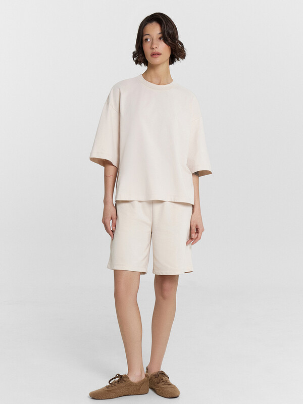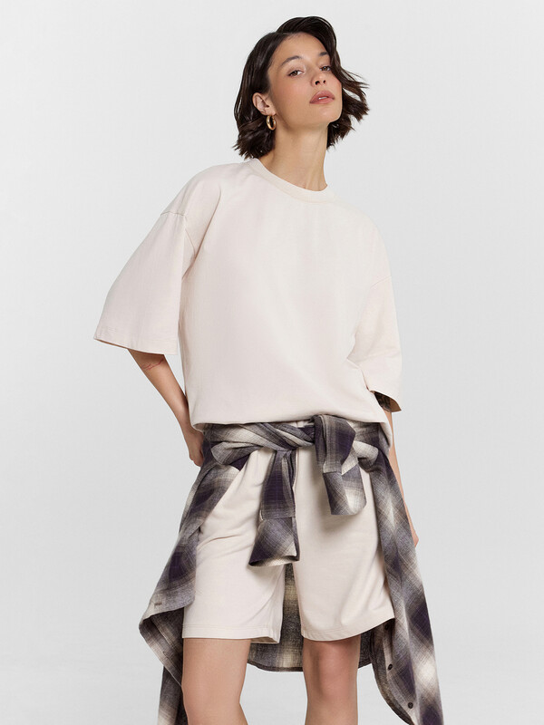 Новинка из коллекции MF Premium — это женский комплект из высококачественного хлопка, идеально подходящий для тёплого времени года. Модель объединяет стиль и комфорт, что делает её универсальным выбором для активных девушек, которые ценят качество и современные тенденции. Футболка выполнена в стиле оверсайз: свободный крой, круглая горловина, спущенная линия плеча и удлиненный рукав создают расслабленный и актуальный образ. Пройма футболки углублена для дополнительного комфорта и свободы движений. Шорты этой модели также отличаются удобным дизайном. Они имеют широкий крой и оснащены эластичной тесьмой в поясе для оптимальной посадки. В боковых швах предусмотрены функциональные карманы, которые идеально подойдут для хранения мелочей. Этот спортивный комплект не только функциональный, но и стильный. Его можно использовать как базу для создания оригинальных повседневных образов. Предлагается широкий размерный ряд, чтобы каждая девушка могла найти подходящий вариант. Эта премиальная линейка идеально подойдет для комфортной носки, прогулок, тренировок или отдыха. Рекомендуем!