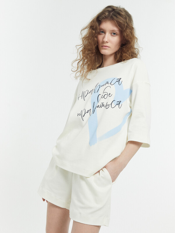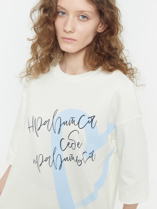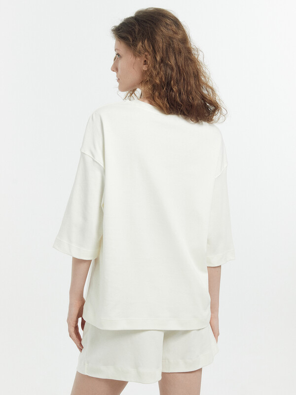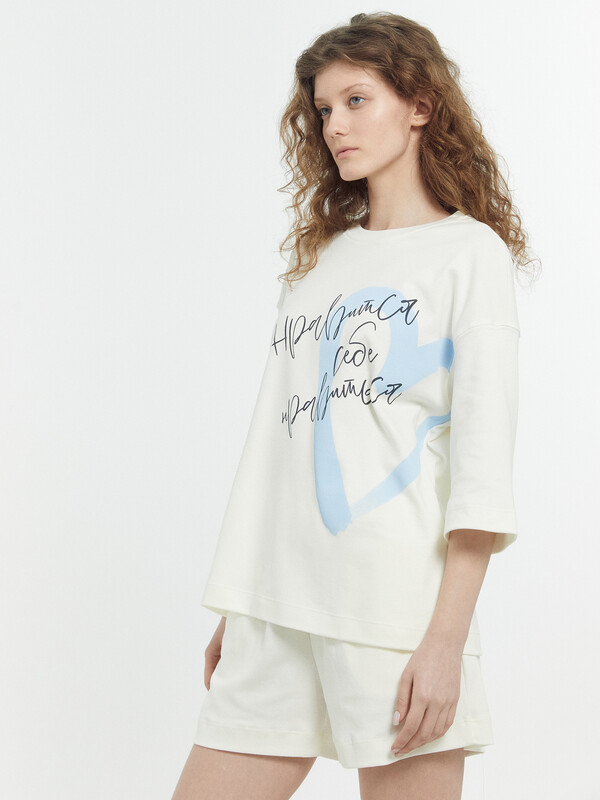 Производитель: Mark Formelle Футболка свободного силуэта. Горловина круглой формы с обтачкой из основного полотна. Рукава втачные свободные, линия плеча спущена. Низ рукавов и футболки обработаны швом в подгибку.