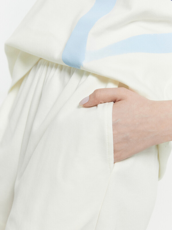 Шорты свободного силуэта с высокой посадкой на талии. Пояс отрезной с эластичной тесьмой внутри, отстрочен. На передних деталях шорт карманы «хулиганы». Низ шорт в подгибку.