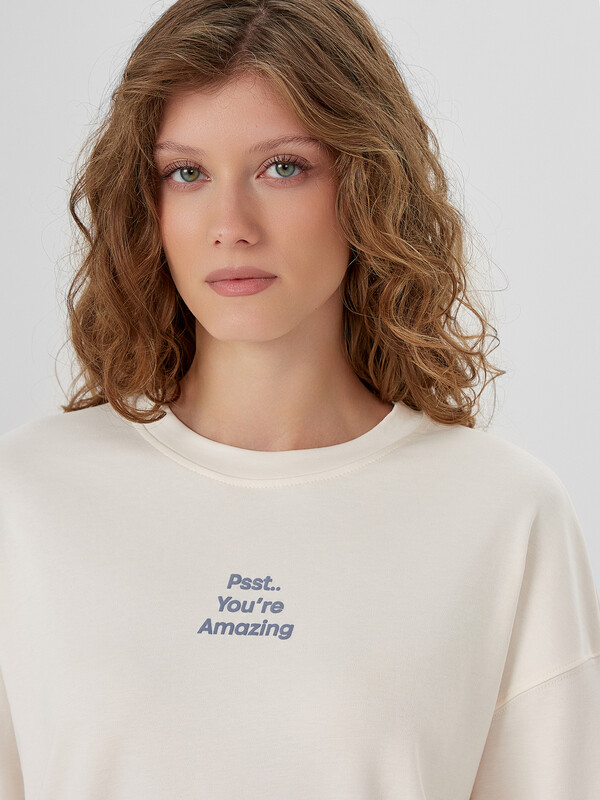 Пижама женская бежевая с надписью «Pss..Ты великолепна» создана для тех, кто ценит уют и внимание к деталям.