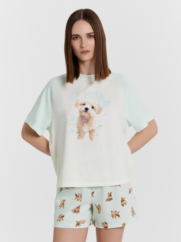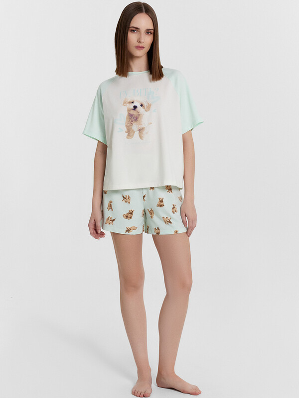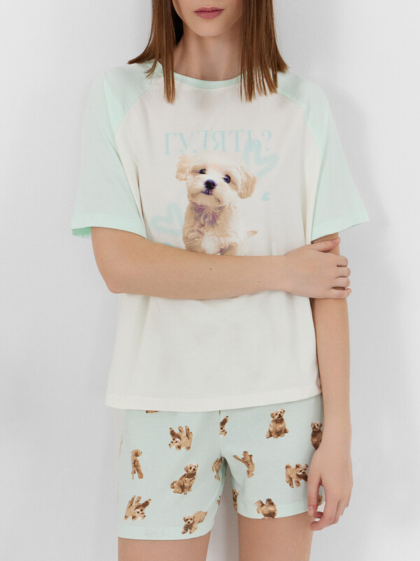Производитель: Mark Formelle Комплект женский состоит из футболки и шорт. Футболка свободного силуэта. Горловина круглой формы, обтачка из основного полотна. Рукава короткий, реглан. Нижний срез футболки и рукавов обработан швом вподгибку.