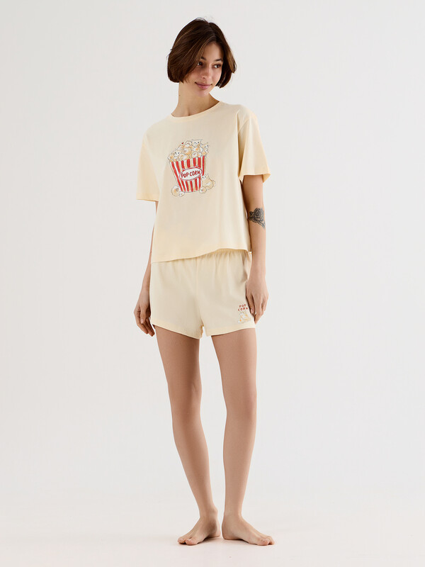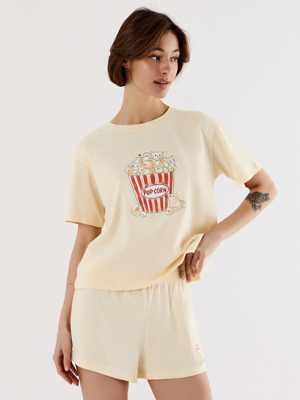 Домашняя пижама с леопардовым принтом и надписью «Изящная жизнь» создает атмосферу комфорта. Этот гармоничный набор из футболки и шорт станет воплощением элегантного отдыха для тех, кто стремится наполнить каждый день гармонией и осознанной красотой.