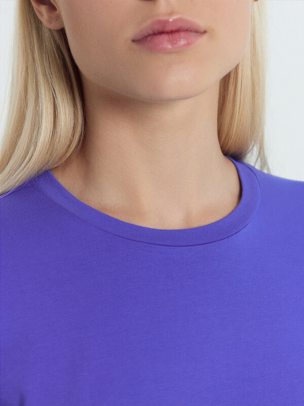 Комплект женский состоит из футболки и шорт. Футболка укороченная, прилегающего силуэта. Перед и спинка цельнокроенные. Горловина округлой формы окантована бейкой из основного полотна. Рукав втачной, короткий. Низ футболки и шорт обработан швом в подгибку.