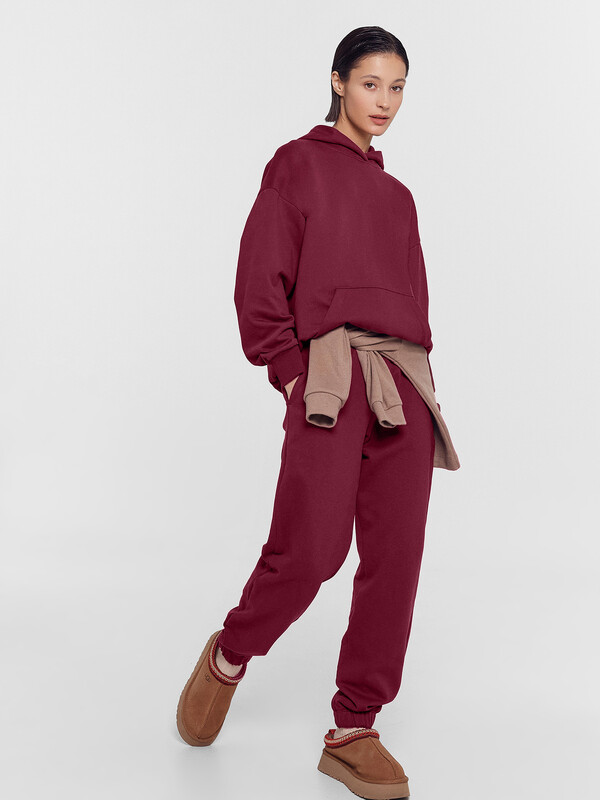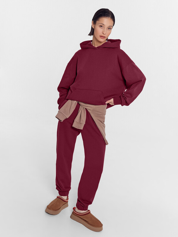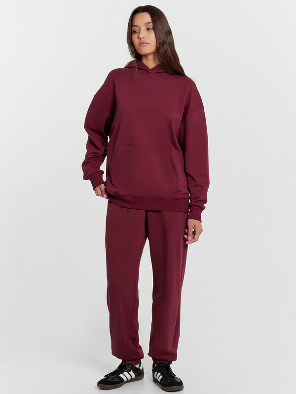 Комплект изготовлен из трикотажного полотна футер. Анорак свободного силуэта (оверсайз), с капюшоном. Горловина округлой формы. Капюшон со средним швом, на подкладке из осн. полотна. Плечо спущено, рукав втачной длинный. По низу рукава отрезная манжета из рибаны. Пояс отрезной из рибаны, отстрочен. Брюки свободного силуэта. Сиденье немного спущено. В боковых швах обработаны карманы.Подкладка карманов из кулирки. Пояс отрезной с эластичной тесьмой внутри. В передней части с лицевой стороны пробиты петли и втянут шнур (с застр. концами). Низ брюк обработан в подгибку с эластичной тесьмой внутри. 100% хлопок Комментарии к товару
