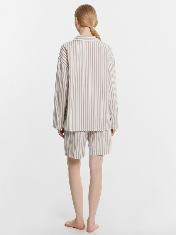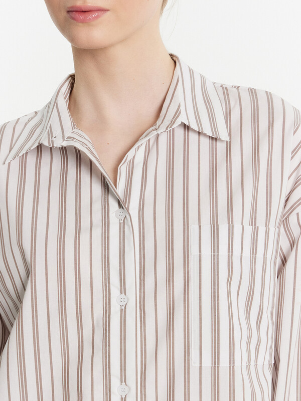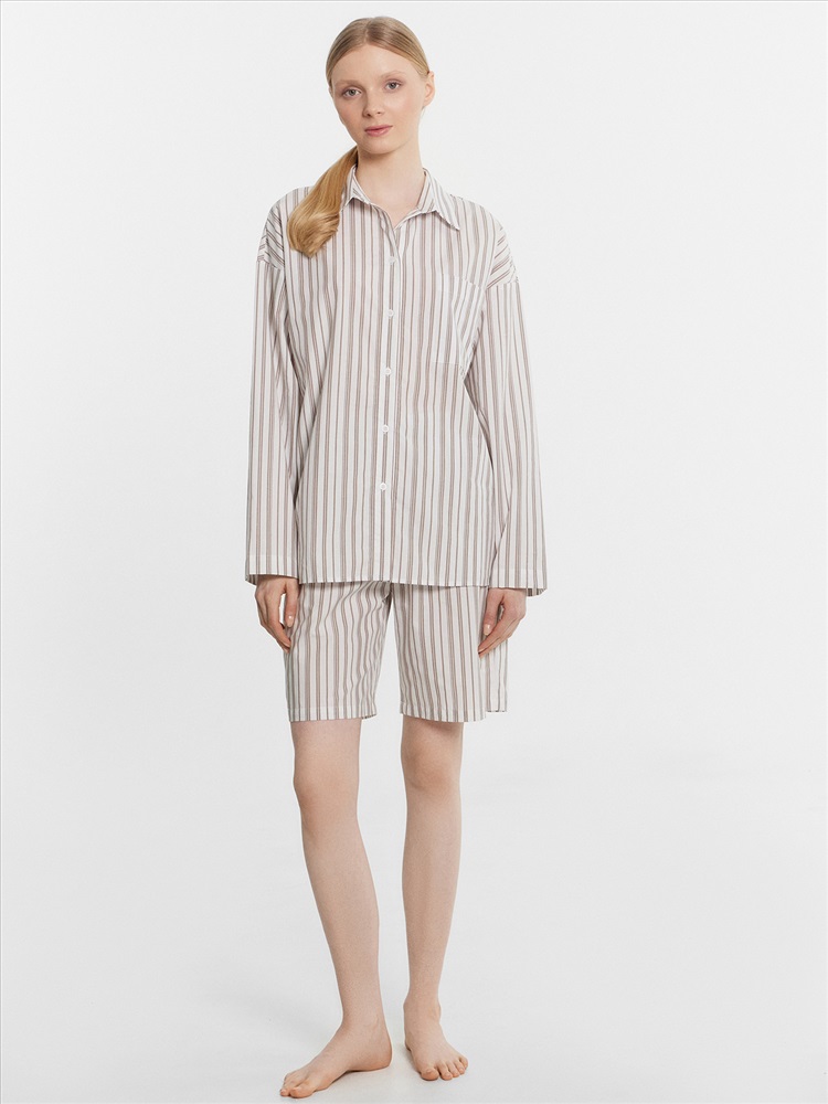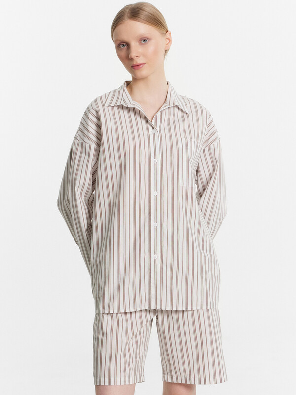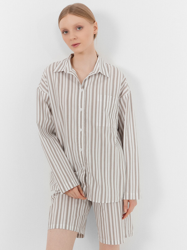 Этот женский домашний комплект, включающий рубашку и шорты, станет отличным выбором для стильного и удобного образа. Рубашка свободного силуэта с классическим отложным воротником, спущенным плечом и длинными рукавами придаёт расслабленный вид. Центральная застежка на пуговицах и накладной карман на груди добавляют функциональности и практичности. Шорты свободного силуэта, удлиненные, с эластичным поясом обеспечивают комфорт и свободу движений, делая их идеальными для повседневной носки и отдыха. Комплект выполнен из лёгкого и дышащего материала, который обеспечивает комфорт на протяжении всего дня. Наслаждайтесь комфортом и стилем каждый день!